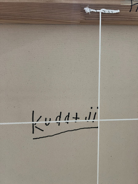 Whilst they were not blood related, Kudditji was recognised as a skin brother of the late Emily Kame Kngwarreye . While Kudditji began painting around 1986, his highly intuitive and gestural method of painting was not welcomed by Galleries, and he was encouraged to paint in the fashionable style of the time, executing works with detailed infill.